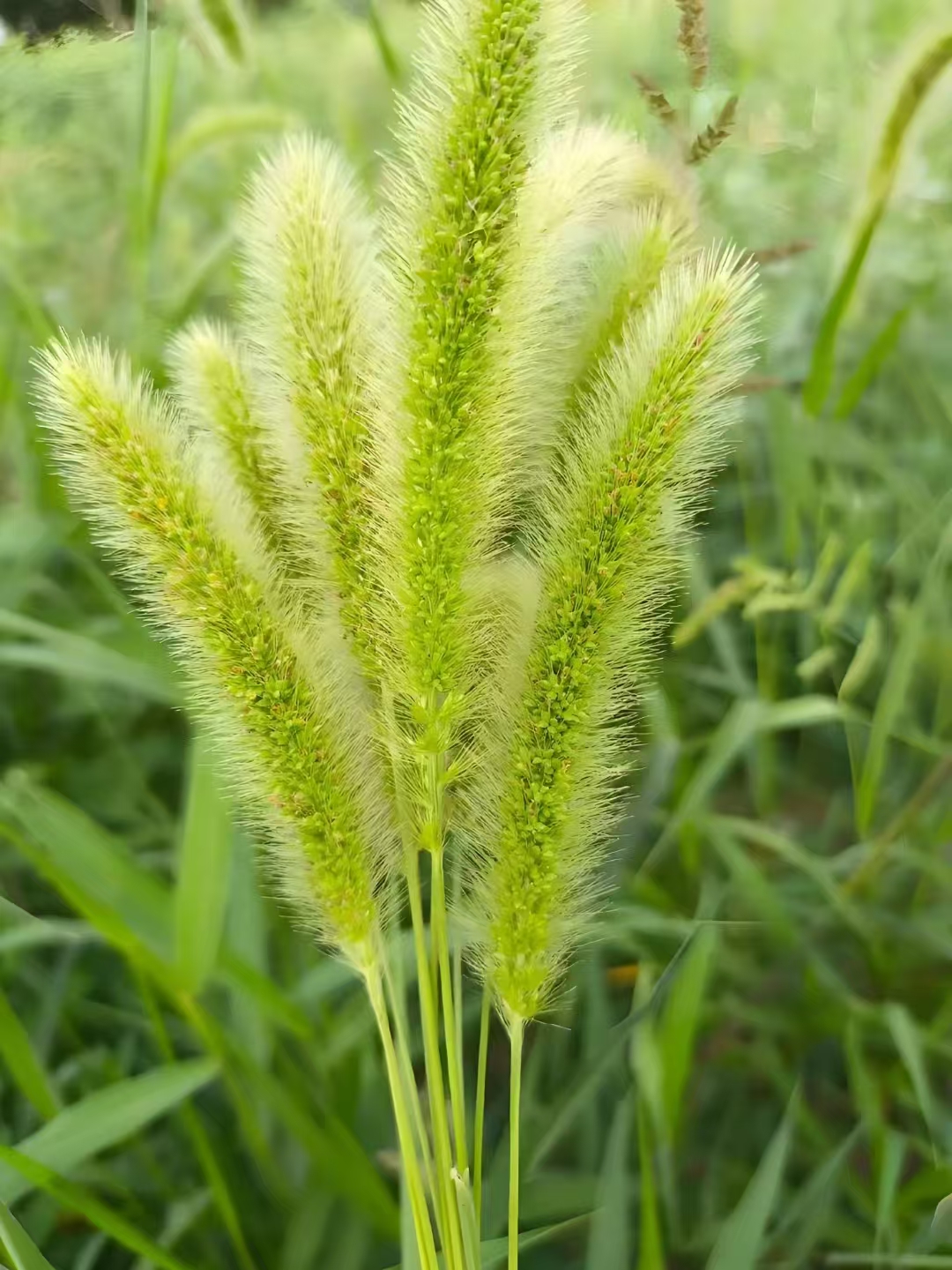 松树下伴生的狗尾巴草,却似尘世里的平凡歌者。纤细的茎干嫩绿柔弱,叶子狭长而质朴,顶端挑着毛茸茸的穗子,蘸着阳光与露华,勾勒出随性的诗意。它不挑土壤,路边、田埂、墙角,只要有一方寸土,便能落地生根,绽放属于自己的一抹翠意,点缀着世界的边角。