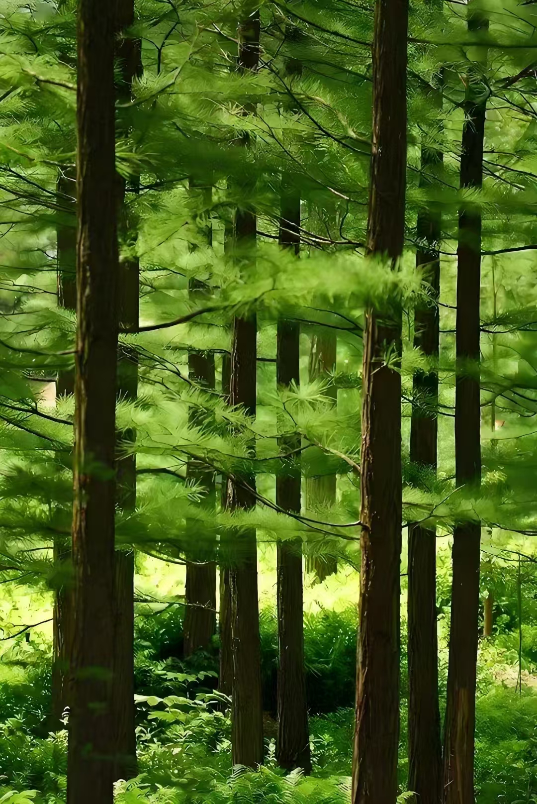 若干年后,方知万年松一一那是岁月凝练的智者。它扎根于黑土之上,褐色的树干粗壮而坚实,树皮宛如岁月镌刻的史书,每一道褶皱都诉说着往昔的风雨。松针层层叠叠,像是为它披上一袭华美的绿袍,在阳光下闪烁着冷峻的光。它高耸入云,身姿挺拔,任霜雪欺压、雷电肆虐,只是稳稳伫立,将根须更深地探入大地的怀抱,汲取着沃土的力量,沉默中彰显着无尽的坚韧。
