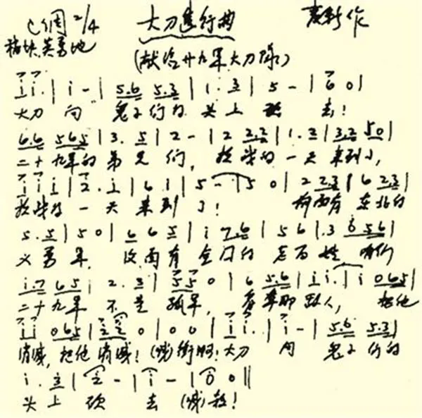 这段文字也明白无误地说明了《大刀进行曲》创作于1935年9月至1937年9月间,虽没有准确说明具体时间,但可以肯定不是1933年。