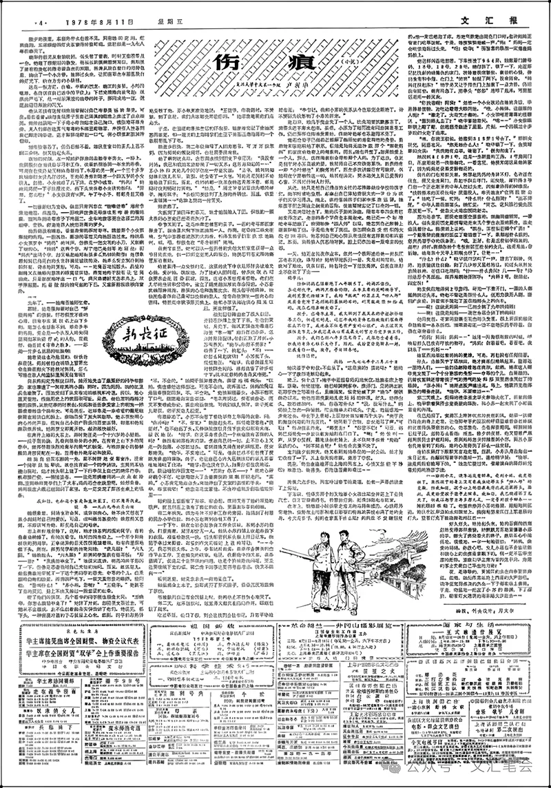 1978年8月11日《文汇报》整版刊载卢新华的短篇小说《伤痕》。