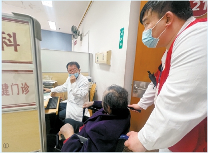 下午3时许,记者在位于乌鲁木齐中路的华山医院总院门诊大楼五楼发现,老年病科门前人头攒动,其中有一位坐轮椅前来就诊的高龄患者面露难色,“红马甲”志愿者发现后立刻走上前,主动与患者及家属沟通,并为患者开通绿色通道,家属连连致谢,“没想到华山医院的服务如此周到”。