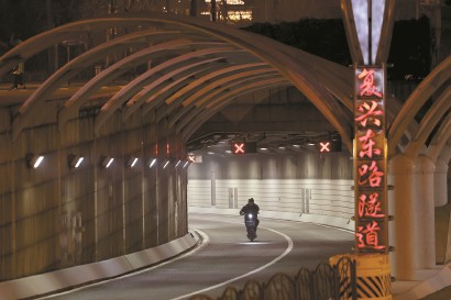自2月16日起,每天深夜11点至次日清晨5点,复兴东路隧道上层允许电动车试通行。这是上海第一条专门、合规开放给非机动车的跨江通道。