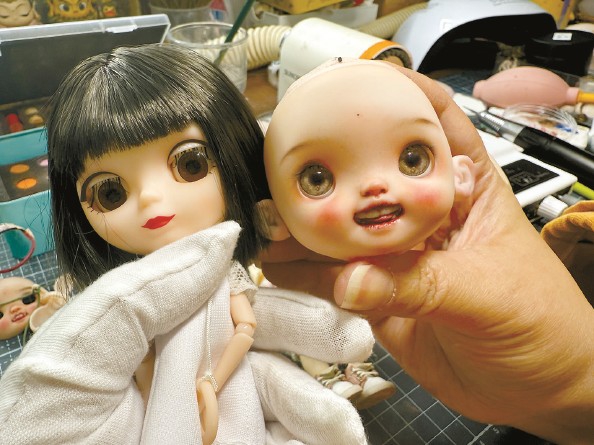 改娃是个长期积累经验的过程,“踩坑”是家常便饭。比如,用卸妆油浸泡时间过长弄坏了娃娃脸上的树脂,或者手一抖把娃娃的鼻子削坏了。改娃时,任何误操作都有可能导致前功尽弃,这也是扁扁心最钟爱改小布娃娃的原因:“小布娃娃一般头很大,还有换眼功能,极简的面部结构使她可塑性特别强,为玩家展示自己内心的缤纷世界创造了无限可能。”