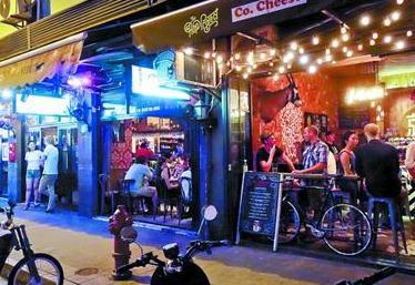 夜晚,吵闹喧哗,当酒吧开始“苏醒”过来,这条马路上充斥着各国语言、各色人种。
