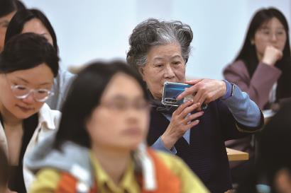 银发形象管理课程是一门关于美的课程。晚上7时刚过,授课教师周偌晨打开课件,首页特地选择了一头银发的老年模特照片。教室里,不少学生头发已经花白。