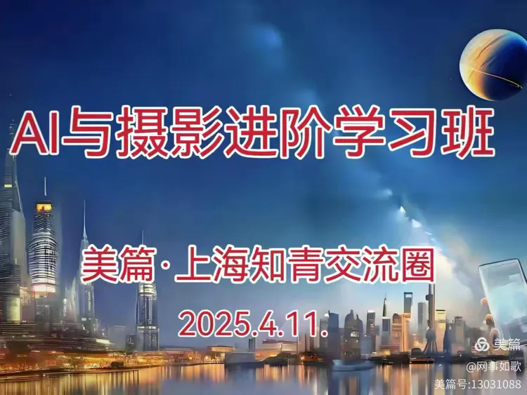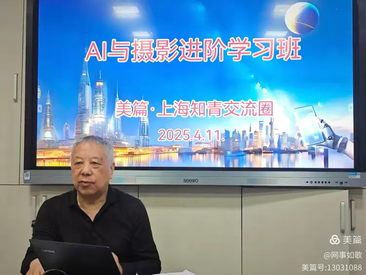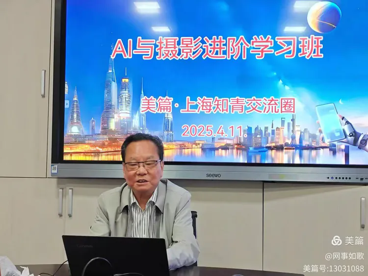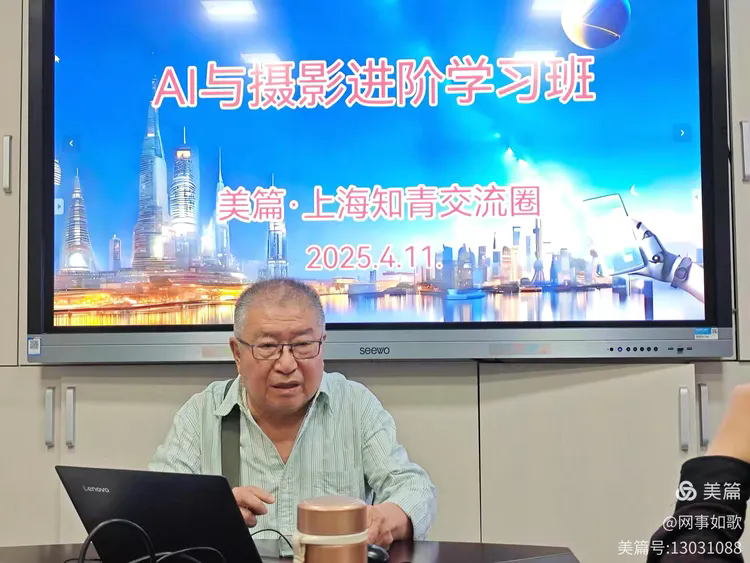 自去年6月份、7月份、9月份美篇上海知青栏目主持人兼我们温馨家园群群主烛光老师在芷江街道组织了第一期、第二期、第三期AI绘画学习交流会后,在10月份、11月份又在江湾党群建设中心组织了学做剪映小视频第一期、第二期学习班。今年4月11号烛光老师在百忙中又组织了第一期AI摄影进阶学习班。