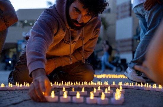 2024年10月7日,新一轮巴以冲突爆发一周年之际,在美国加利福尼亚州洛杉矶,加利福尼亚大学洛杉矶分校的学生们参加集会活动时点亮蜡烛。新华社/美联