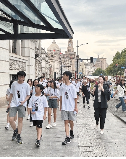 青年学子参观外滩建筑群。(受访者供图)