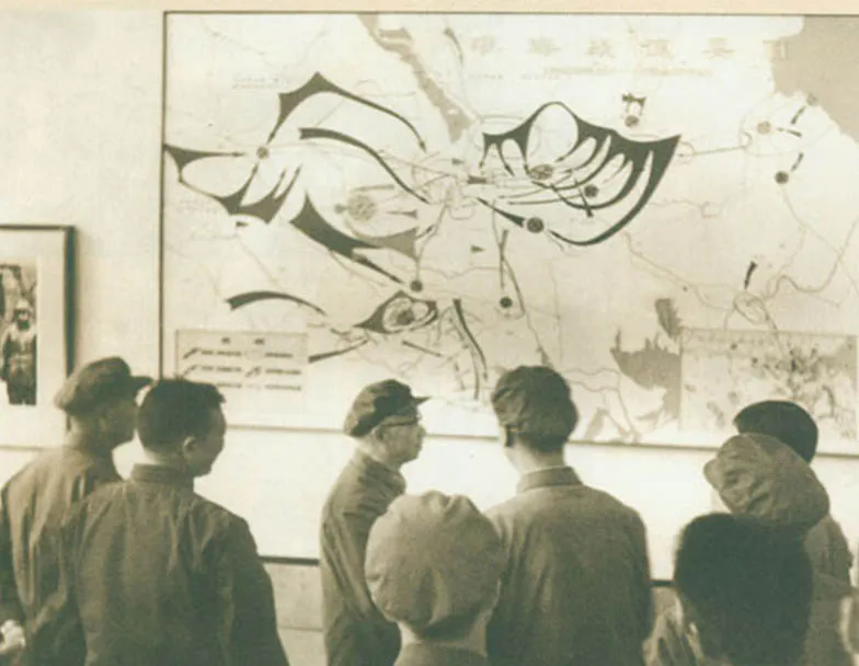 粟裕态度诚恳地说,新的意见没有什么了。只是我看了展览后感觉有的照片陈列大小尺寸不太合适。比如二中全会中康生的照片大于周恩来副主席的照片,这样不妥,等等。接着粟裕又重复了三点:一是睢杞战役,二是济南战役,三是三大战役的胜利,这三条一定要向观众讲清楚。睢杞战役和济南战役的伟大胜利,在战略上具有伟大意义,它使华北、华东两大解放区连成一片,缩短了战争的进程,拉开了战略决战的序幕。他边说边攥着拳头示意,一如前边所述。