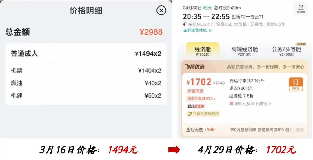 要知道过往五一乃至国庆,鉴于每逢佳节必降价定律,作为无数次被机票背刺过的倒霉蛋,这次我提前做足了功课