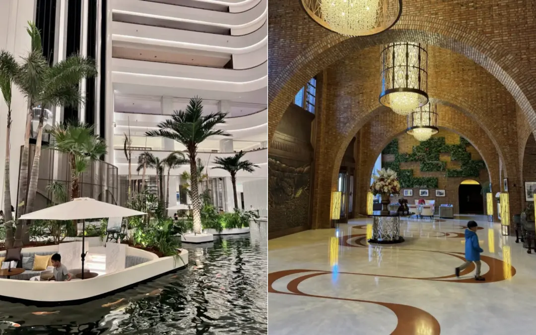 这富丽堂皇的大堂,堪比新加坡的室内绿化