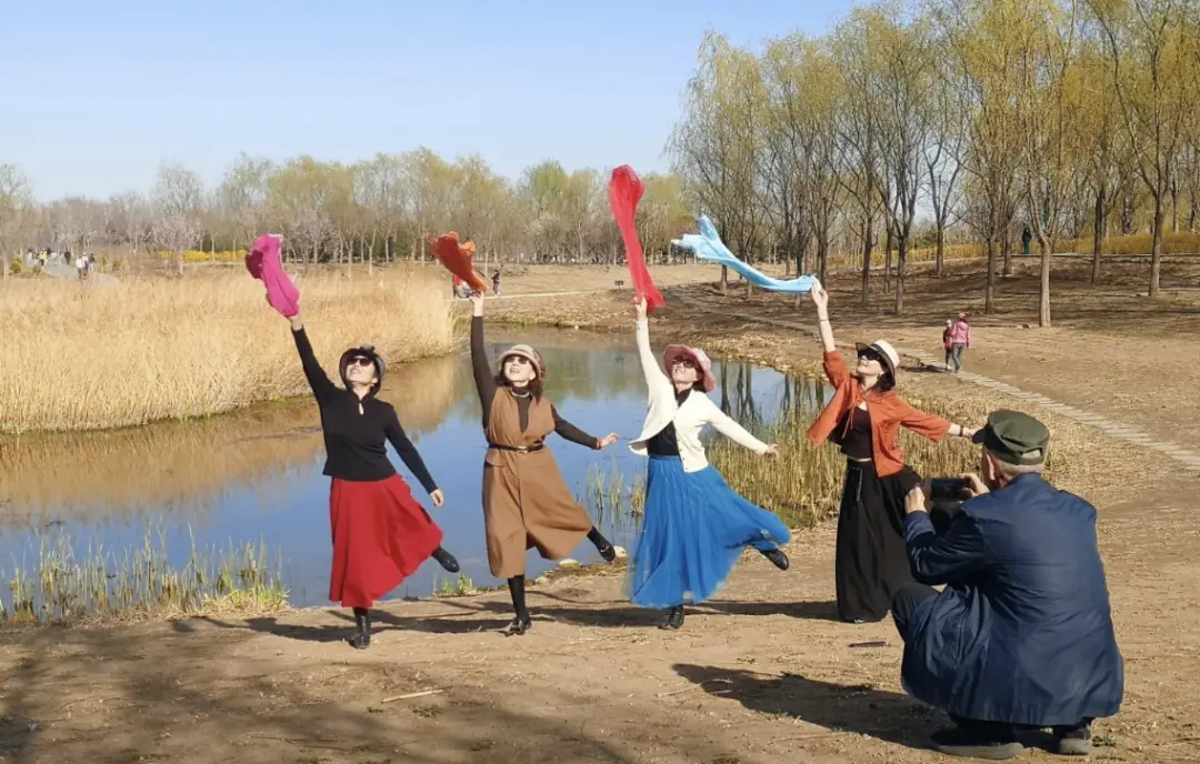 而每一个阳光灿烂的阿姨后面也都蹲守一位会拍照的大爷