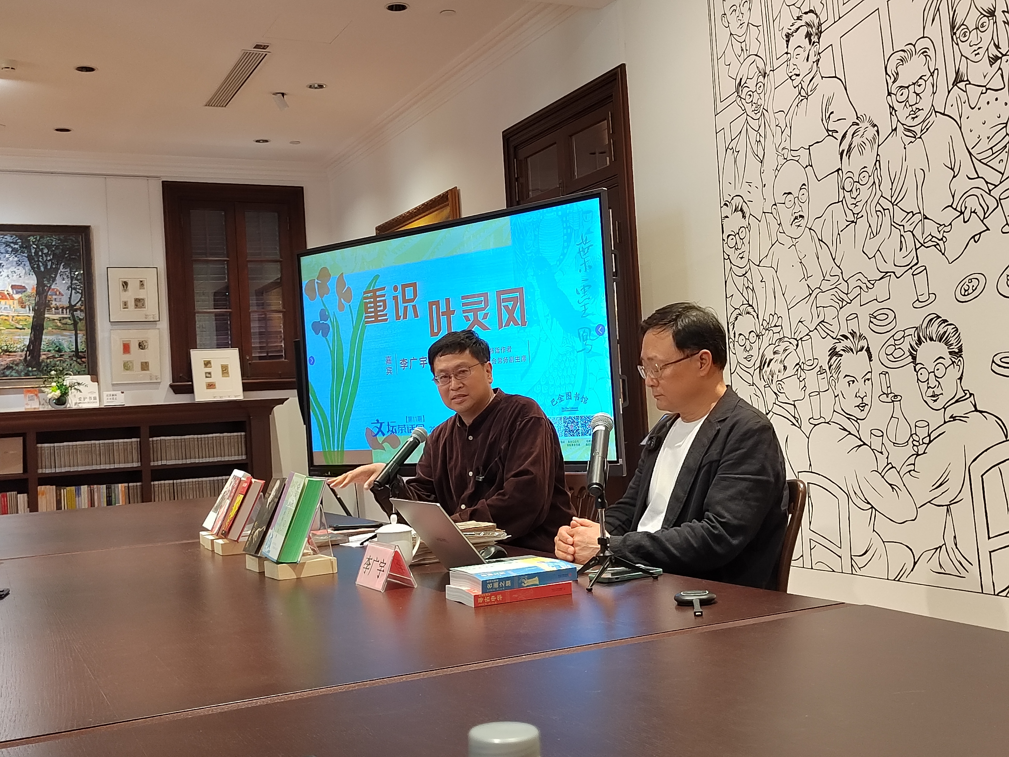 作者(周立民馆长)与《重识叶灵凤》演讲者李广宇(右)在会场(晓歌摄影)