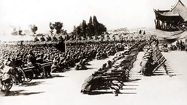 ◆1949年10月,1兵团在酒泉誓师进军新疆。