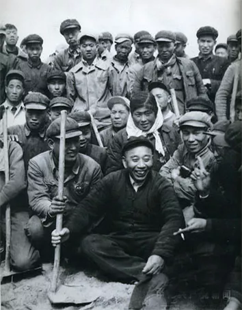 ◆1946年王震率359旅从中原突围后返回延安后与毛泽东合影。右五为王震。