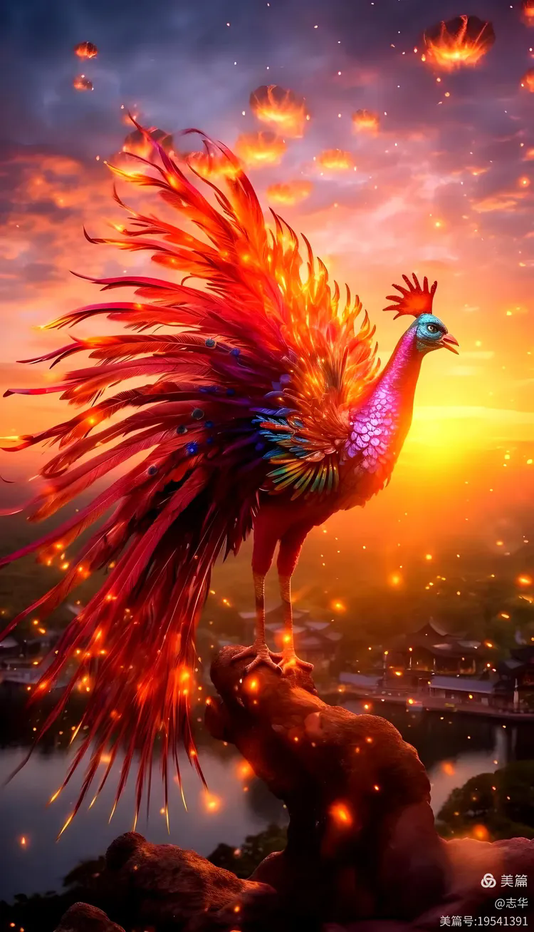 百兽之王凤凰是古代神话传说中一对鸟类,雄为“凤”雌为“凰”,二鸟的形状像是普通的鸡,全身上下都是五彩斑斓的羽毛,头上的花纹是“德”字的形状。凤凰和龙是中华民族最神圣的动物,代表着最高的吉祥与美好。