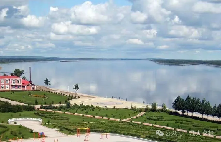 (昔日黑龙江边瑷珲知青宿舍,今日已成瑷珲江边绿地花坛景观。)