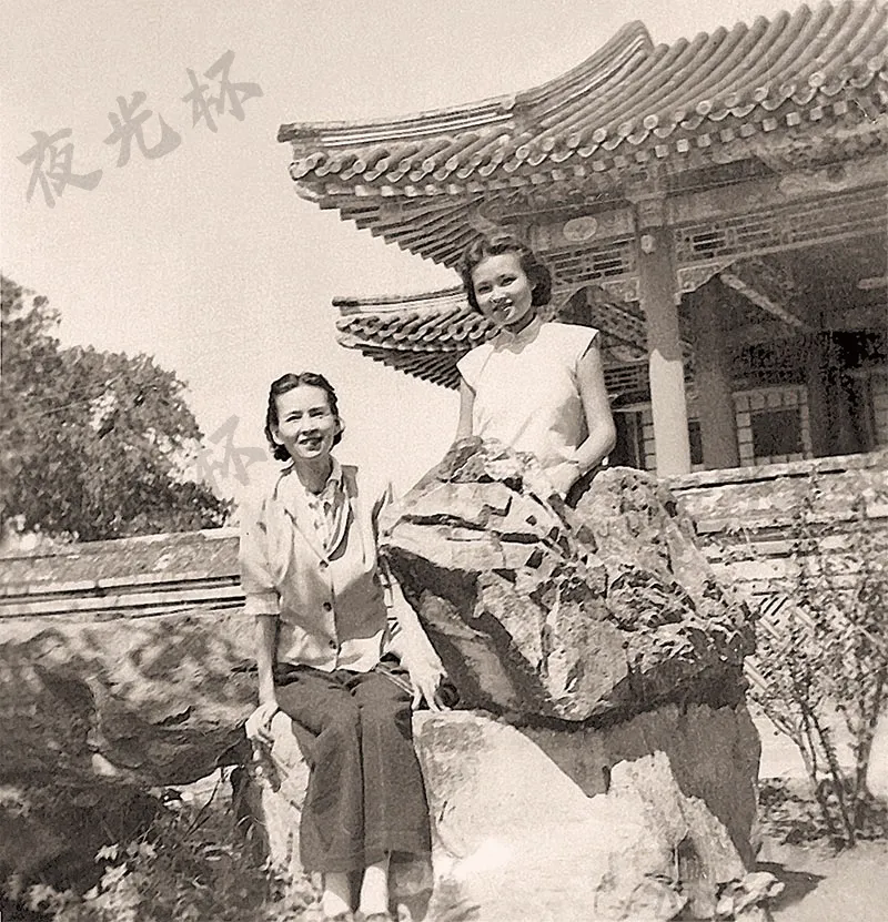 1947年,林徽因在女儿梁再冰陪伴下游览颐和园