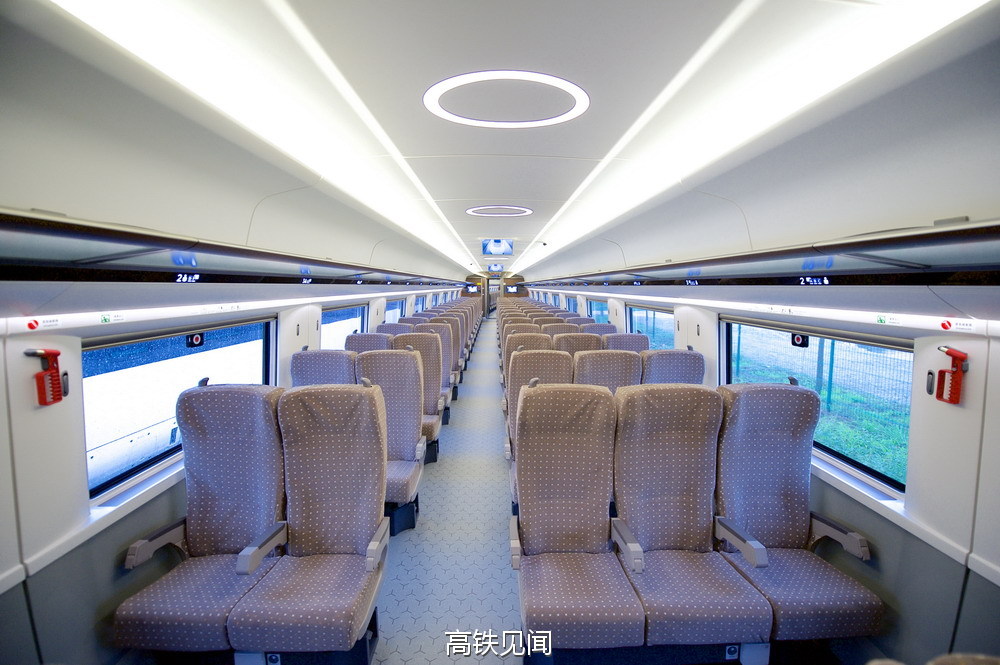 为改善旅客乘车体验,中国标准动车组充分体现了人性化设计理念,进一步优化了旅客界面与司乘界面,在乘车空间、空调系统、行李架设置、车厢照明、无障碍设施等方面做了改善。车厢内二等座椅间距统一加大到1020mm、一等座椅间距统一加大到1160mm,设置不间断的旅客用220V电源插座。