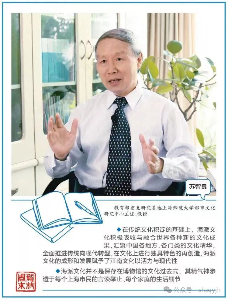 海派文化已融入城市的肌理、市民的骨髓。每个市民个体都各具风格,正是这种不统一、不从众形成了海纳百川、开放创新、包容务实的气象。上海文化强大的生命力,源于其在海纳百川的基础上一直在追求卓越,因而勇于变革、勇于创新。 海派文化也是面向未来的文化。它拒绝故步自封、人云亦云和随波逐流,而珍视察人所未察、发人所未发。从中华文明和整个人类文明发展的角度来考察,今天的中国已经进入一个新时代,正在创建一种新的文明。这个新的文明融新型农业、工业、信息、生态等为一体,生机空前蓬勃,创造力空前旺盛。海派文化所面对的未来,正是这样一个大有可为的未来。