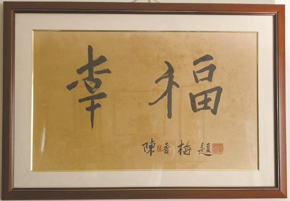 您多次来上海,对上海经济发展的印象如何?我问陈香梅。她说我早年在上海住过,上海是“东方的明珠”。她见证了上海的“一年一个样,三年大变样”。我与陈香梅交往了整整27年,在工作之余,我喜欢书法、田野考古、古瓷收藏等,陈香梅对此十分赞赏,鼓励道,民国时文人大都有收藏古物的爱好。对我书写的碑匾书法,她看得很仔细,还赞赏道,写得漂亮,著书立说,树碑立传,是每个文化人的追求。陈香梅也喜爱写毛笔字,共同的爱好,让彼此有了更多的话题。2001年金秋,我乔迁新居,陈香梅闻讯欣然挥毫题写了斗大的“幸福”二字相赠,为寒舍增光添色;25年前,我撰写《人间瓷话》一书,她在百忙中为拙作写序;得知我为撰写《寻访中华名窑》而跋山涉水奔走在中华大地考察时,她又亲自题词:“祝福寻访中华名窑,再有更大收获。”她认为能以一己之力,寻访古窑遗址,是做了一件有意义的事情,早该有人来做这项弘扬中华传统陶瓷文化的基础工作;2010年文新报业集团等单位举办《祈福世博平安——钱汉东古陶瓷香炉藏品展》,陈香梅亲自率一帮朋友前来,现场题词祝贺。陈香梅为了让世界更多地了解中国,一生写了60余部作品,如《一千个春天》《春水东流》等,不少作品介绍了她对上海的独特情结。陈香梅女儿陈美丽教授告诉我,进入晚年后,妈妈每天都会重读她早年出版的作品,重温自己丰富的人生以及与上海的过往。每当收到钱先生的作品或碑刻照片时,妈妈都会让我们读给她听,拿给她看。一桩桩往事,无不透露出陈香梅对一个无名后生的殷殷期望,此生能与陈香梅成为忘年交,是我最大的荣幸。