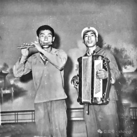 然后,我与小李子登台表演。我用笛子吹奏当时很流行的曲子《我是一个兵》,小李子是即兴发挥,用手风琴为我伴奏。