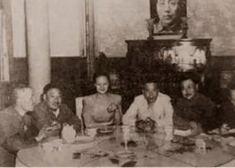 ◆上世纪50年代初,袁殊(左二)在北京与李克农(右二)等在一起。
