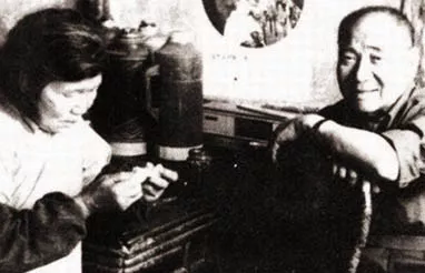 ◆平反后的袁殊在潘汉年故居,与潘汉年妹妹潘玉琴合影。