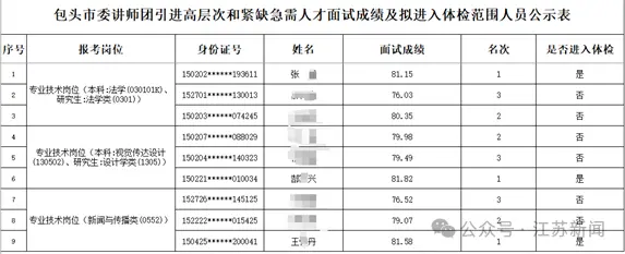 《关于包头市委讲师团面向社会公开引进紧缺急需专业人才面试成绩查询及进入下一环节人员名单公告》。