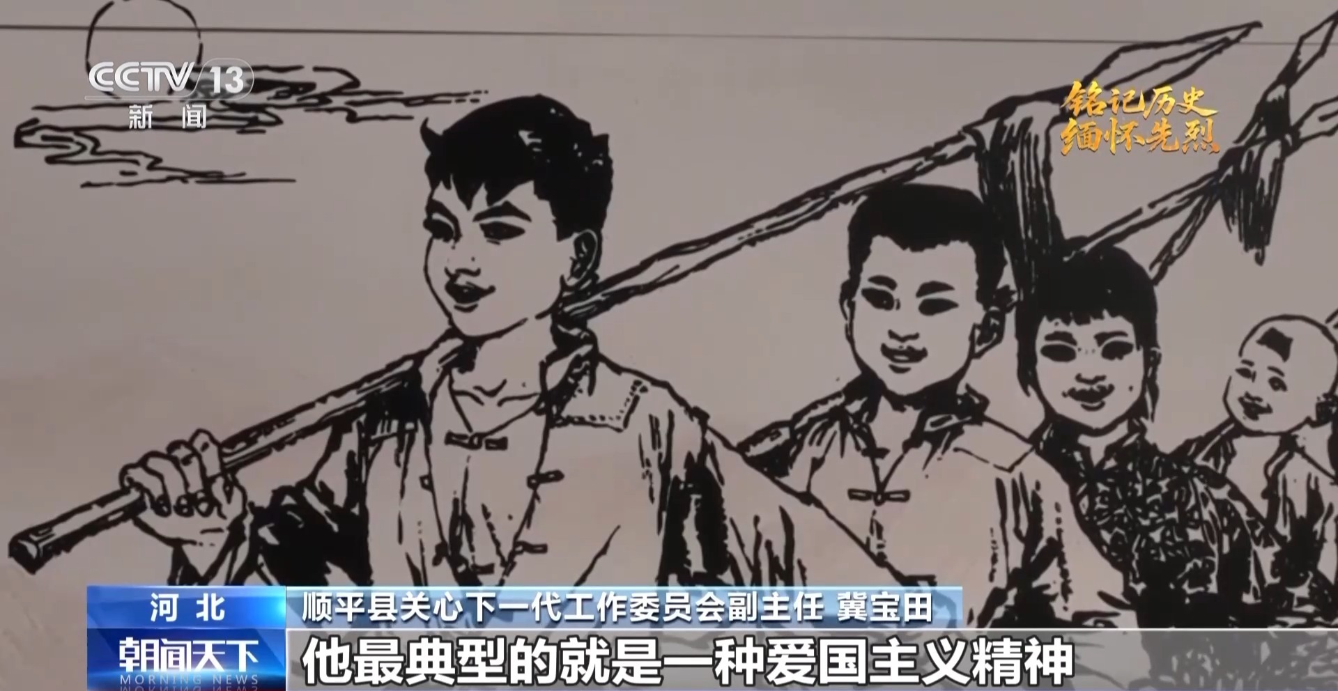 河北省顺平县关心下一代工作委员会副主任 冀宝田:他最典型的就是爱国主义精神、民族主义精神,为了民族大义、为了国家,宁肯牺牲自己。