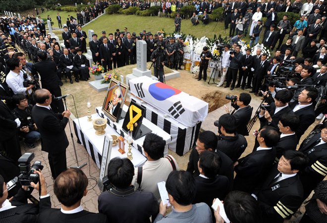 长烨葬礼,其棺材上覆盖了韩国国旗