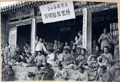 抗战期间,妇救会组织青年妇女和民兵学习时事。图片由《解放军画报》资料室提供