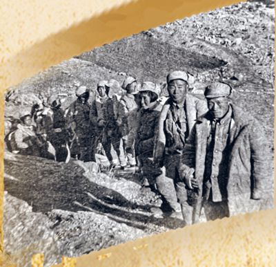 抗战期间,冀中军区第7军分区部分抗日队伍行军在滹沱河畔。图片由《解放军画报》资料室提供