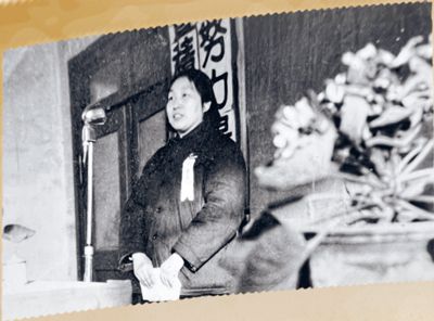 1943年1月,晋察冀边区第一届参议会在河北阜平县温塘召开,刘毅受委托代表冀中区400万妇女发言。图片由《解放军画报》资料室提供