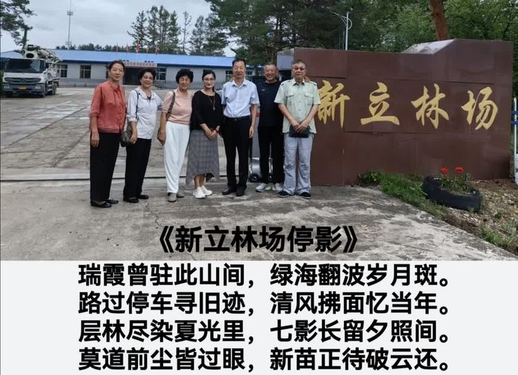 汽车缓缓驶过新立林场,我们停驻在大门前,指尖轻抚过岁月雕琢的门框——这里曾留下牟瑞霞老师晨露沾衣的足迹。
