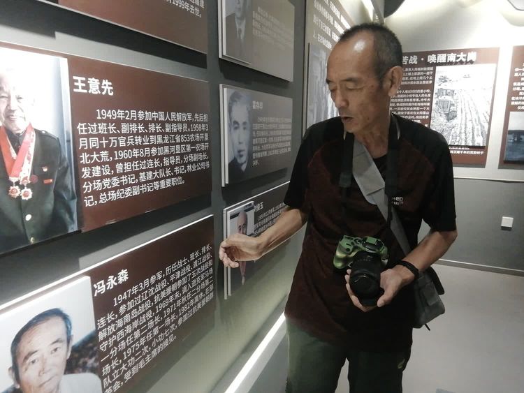 展馆展示许许多多照片和实物,反映第一代复员军官来小兴安岭艰苦奋斗建农场,又变迁为军马场,后又变换农场。尤其是军马场的代表曾被毛主席以及中央领导人的接见,观后动情留下诗一首: