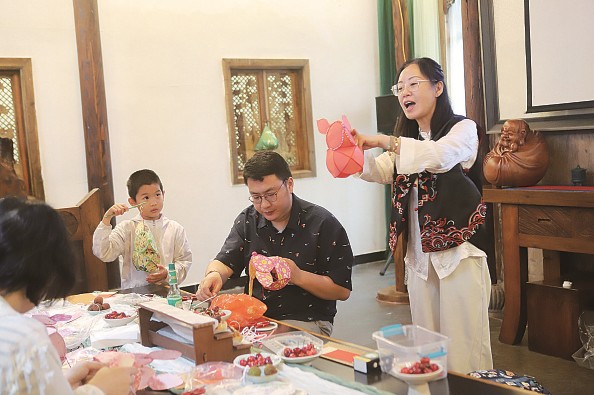 传承的火炬在家族中代代相传。何克明的女儿何彩虹习得了父亲的独门技艺,并将传统兔子灯玩出了“百般新意”;何家的第三代,何克明的外孙女韩凤,在埋头钻研灯彩技艺的同时,还将这一非遗“火种”推广到社区,让社区居民和孩子们领略到“何氏灯彩”的传统手艺之美。(本版图片由受访者提供)