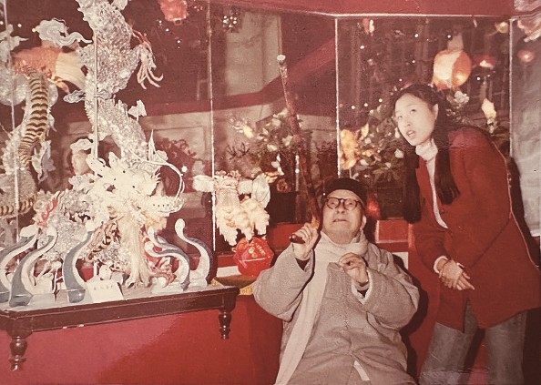 韩凤(右)与外公“江南灯王”何克明(左)在一起
