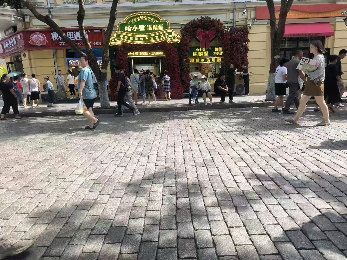 气候真好,已有初秋的凉意。青石板路被百年脚步磨得温润,中央大街的俄式尖顶浸在阳光里,像打翻的蜂蜜罐。面包石缝隙里,似还飘着列巴的麦香与旧日的马铃声声。