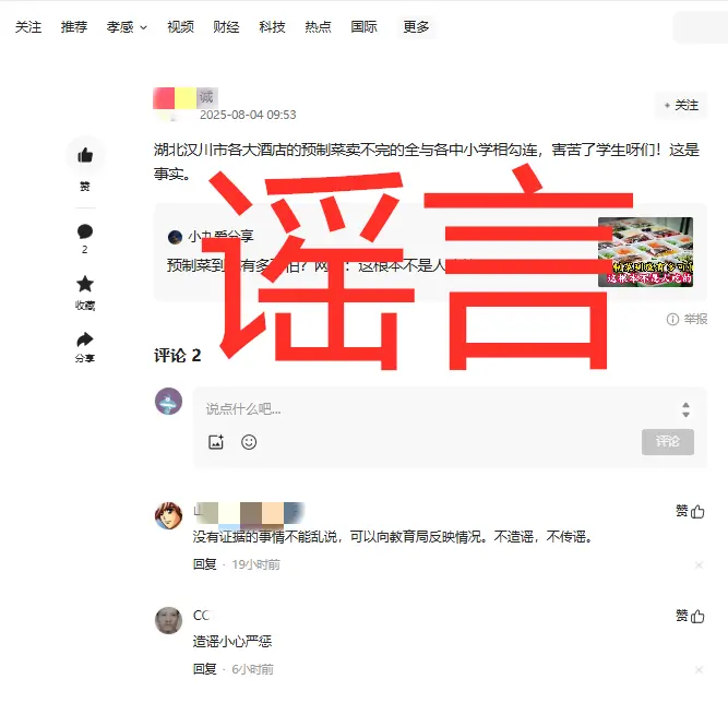 卖不完的预制菜都给了中小学?湖北一地警方辟谣