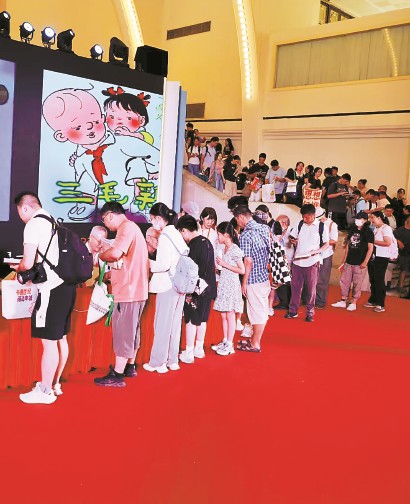 “国潮顶流‘三毛’诞生90周年暨三毛新书发布会”在上海展览中心中央大厅举办。少年儿童出版社三毛图书编辑部主任周婷是这场活动的现场总调度,“每年三毛图书在上海书展最闹猛的就是签名活动,读者提前几天到展台买书就会打听哪天可以签名。90年前,三毛漫画在《晨报》副刊连载时,无数市民追着看;90年后在上海书展,依然有这样自发性的市民活动。”