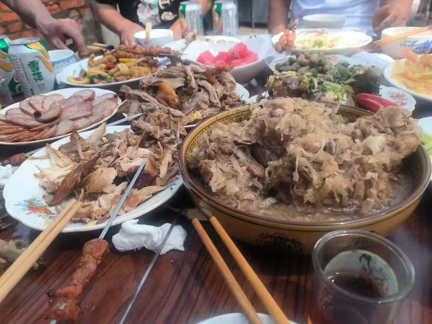 感谢鲜族村游。学生驾车特意带我去了萝北的一个朝鲜族村落,走进村子,鲜花盛开,具有民族特色的周边环境,直觉干净。说是朝鲜族主打菜狗肉,我不吃,而那一碗酸甜口味的凉面,还很入口,我也是第一次品尝。