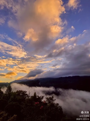 东方博毅此作如一幅氤氲的水墨长卷,在尺幅之间舒展着自然灵性与人间温情的双重奏鸣。诗人以洗练笔触勾勒出仙女山雨后初晴的空灵意境,云雾缠绵峰峦,深谷万物及府前鲜花,在变幻无穷的神光沐浴中摇曳生姿,这般超逸之境既是对避暑初衷的回应,更是为下文的人文雅集铺设出神性背景。