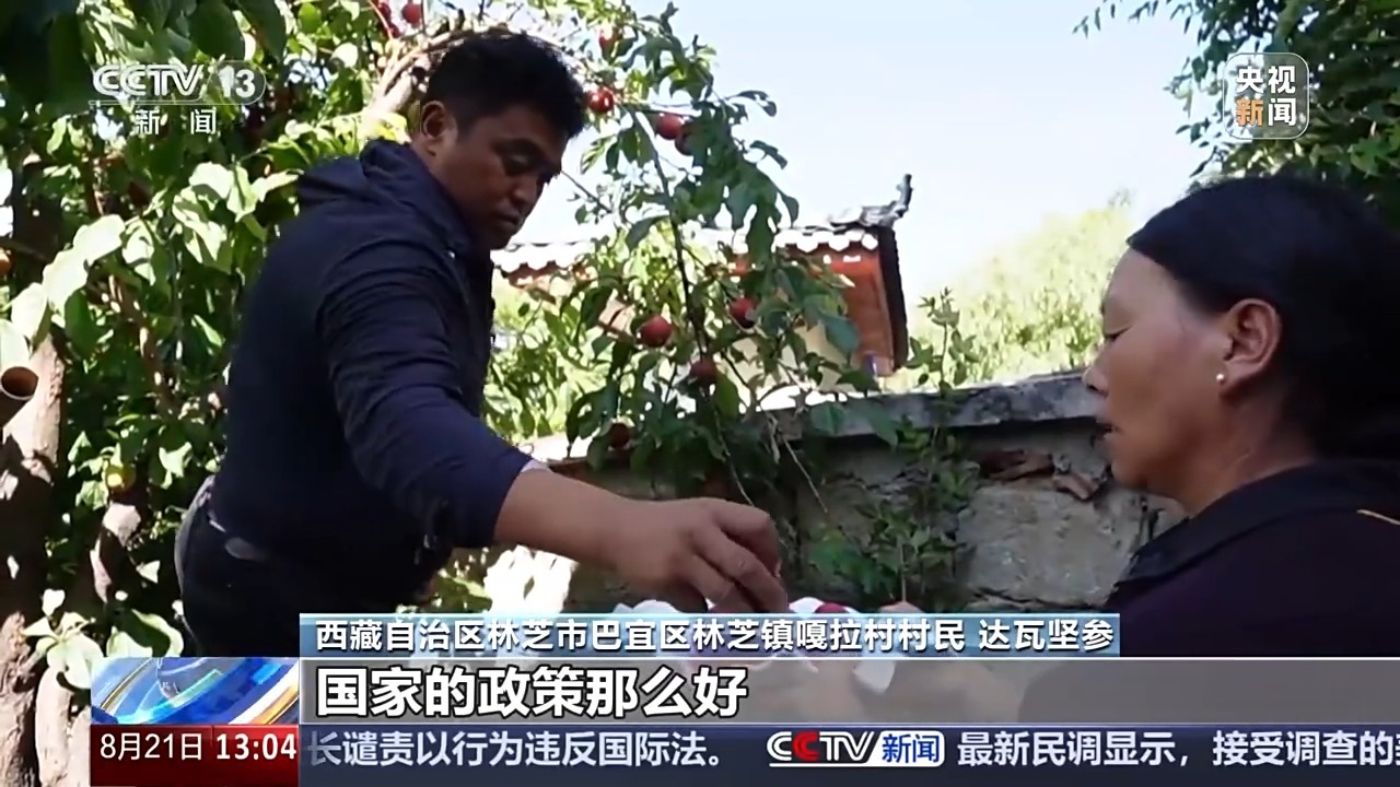 西藏自治区林芝市巴宜区林芝镇嘎拉村村民 达瓦坚参:我对现在的生活很满意,国家的政策那么好。教育上面,孩子从幼儿园开始都是“三包”(包吃、包住、包基本学习用品)政策,看病90%可以刷医保。