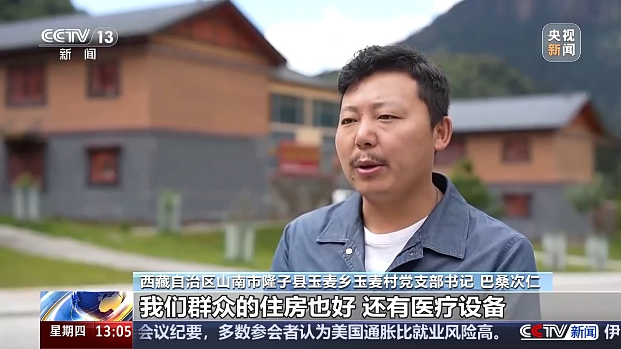 西藏自治区山南市隆子县玉麦乡玉麦村党支部书记 巴桑次仁:群众的住房、医疗设备、学校设备都比较齐全,特别是远程教育比较发达,网络5G全覆盖,现在我们的群众更愿意留在这儿,守好这片土地。