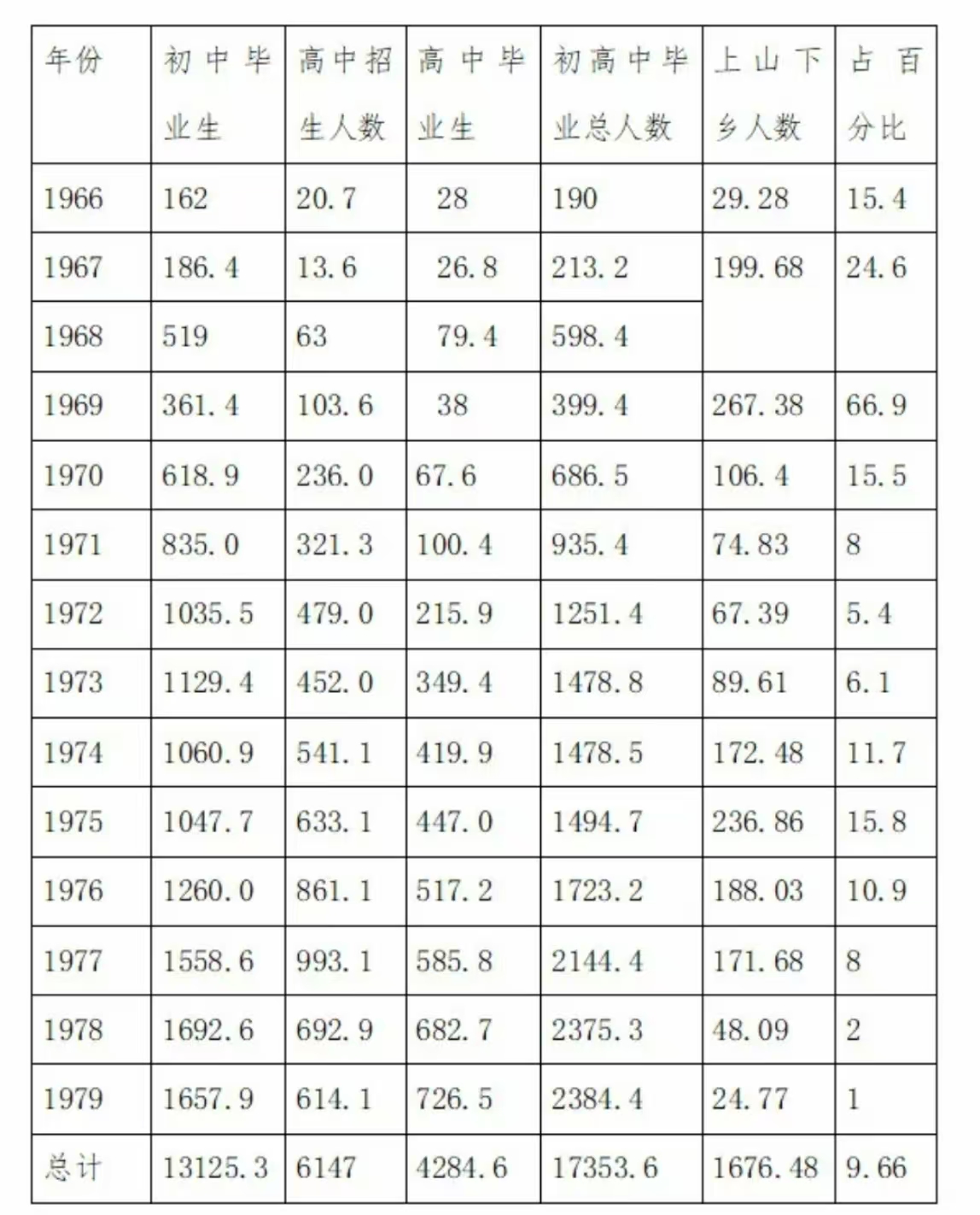(资料来源《中国教育大事典》第337-338页,浙江教育出版社。《中国知识青年上山下乡始末》第258页人民日报出版社)