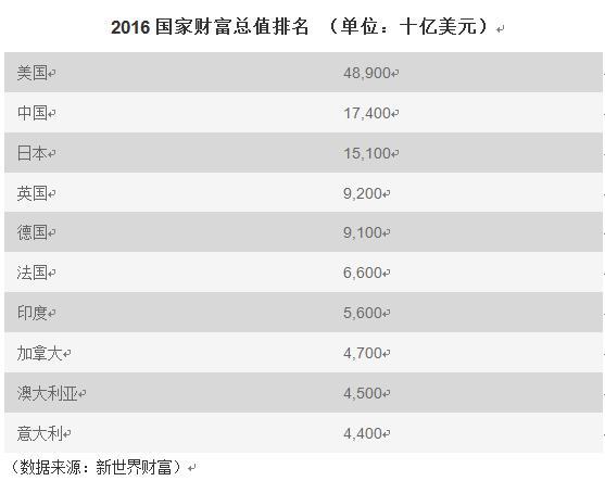 十大世界最富裕国家排名出炉:中国名列第二