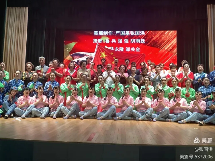 上海市东方诵读艺术团带来的朗诵《梦回卢沟桥》,声情并茂地回顾了卢沟桥事变的历史瞬间,唤起观众对那段屈辱与抗争岁月的深刻记忆;普陀万新艺术团的小组唱《铁道游击队之歌》节奏明快,展现了铁道游击队员的英勇机智,而该团压轴献上的混声合唱京歌《没有共产党就没有新中国》,更是以独特的艺术形式,唱出对党的衷心拥护与感恩,将演出推向高潮。