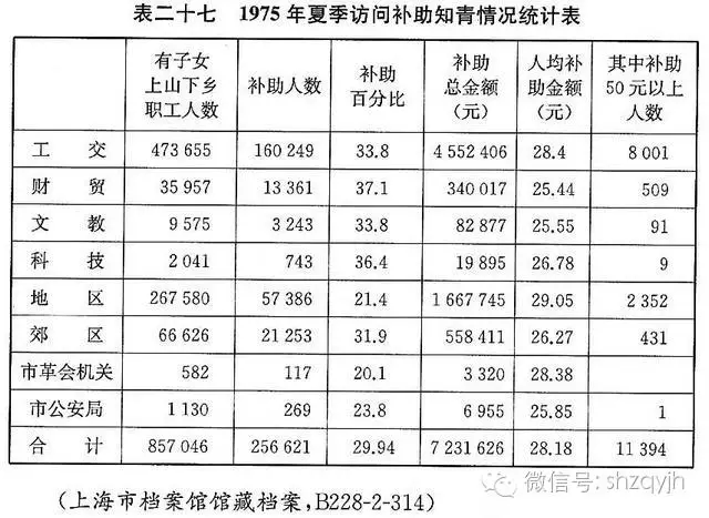 [注](上海市档案馆馆藏档案。B127—4-77)该调查报告指出:上海共有知青105.6万人,其中“文革”以前11万人(包括去新疆生产建设兵团8.5万人,江西共大1万人,湖北等其他地区1.5万人);“文革”以后94.6万人,其中去外省60万人(农场21.8万人·插队38.1万人,遍及黑龙江、吉林、辽宁、内蒙古、云南、贵州、江西、安徽、江苏、浙江10个省),去本市市郊农村的35万人(农场26.5万人,插队8万余人)。为了巩固上山下乡的成果,上海市对知青采取十大措施,分别是:从1969年开始,派出干部组成知青慰问团,并逐年增加;举办函授教育,加强青年的文化、科学教育;提供青年读物和各种小册子数百万册;物资支援,并同帮助后进队结合起来,发展农业;进行访补工作,做好下乡青年的家庭工作;做回沪青年工作,办各种学习班,组织下乡青年讲用等;召开家长小组、家长代表会,动员城市广大群众配合,对下乡青年做思想工作;办小作坊,探索病弱青年就地安置的途径;落实政策,照顾特困和有病青年回沪;动员工作时,宣传教育的工作放在外地。
