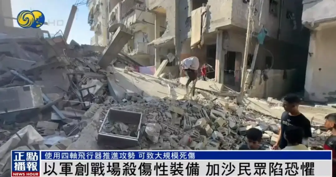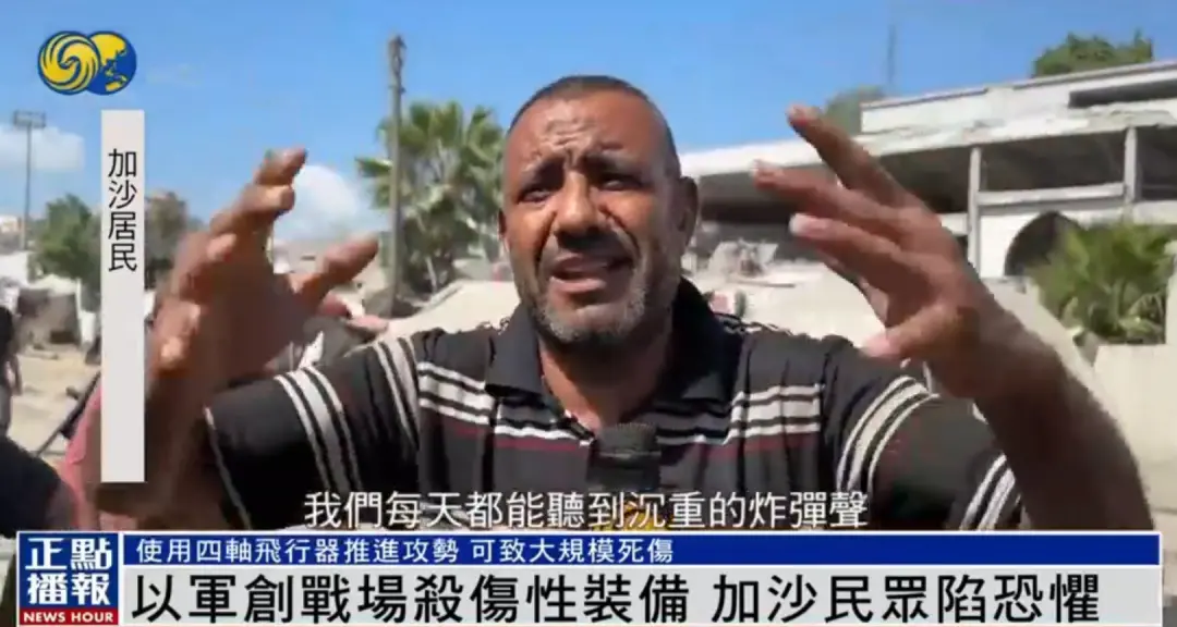 据凤凰卫视报道,加沙战场上,以军创新作战方式,投放“四轴飞行器”等高科技装备,推进攻势,一次可造成大规模伤亡。与此同时,加沙人道主义局势还在恶化,民众在战火中深陷恐惧和无助。